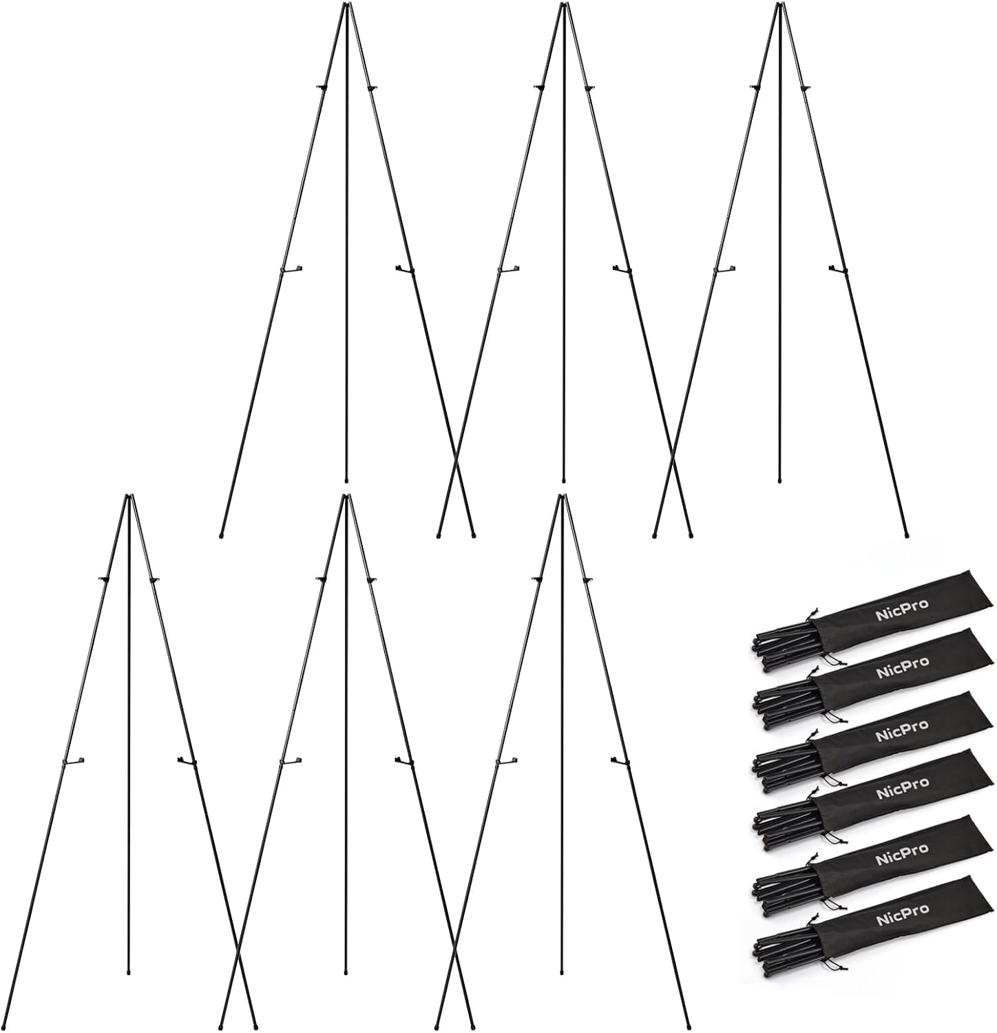 Nicpro Art Folding Easels for Display, 6 Pack 63 Inches Metal Floor Easel Stand Bulk Tripod Black Collapsible for Sign Artist Poster Wedding | with Carry Bag