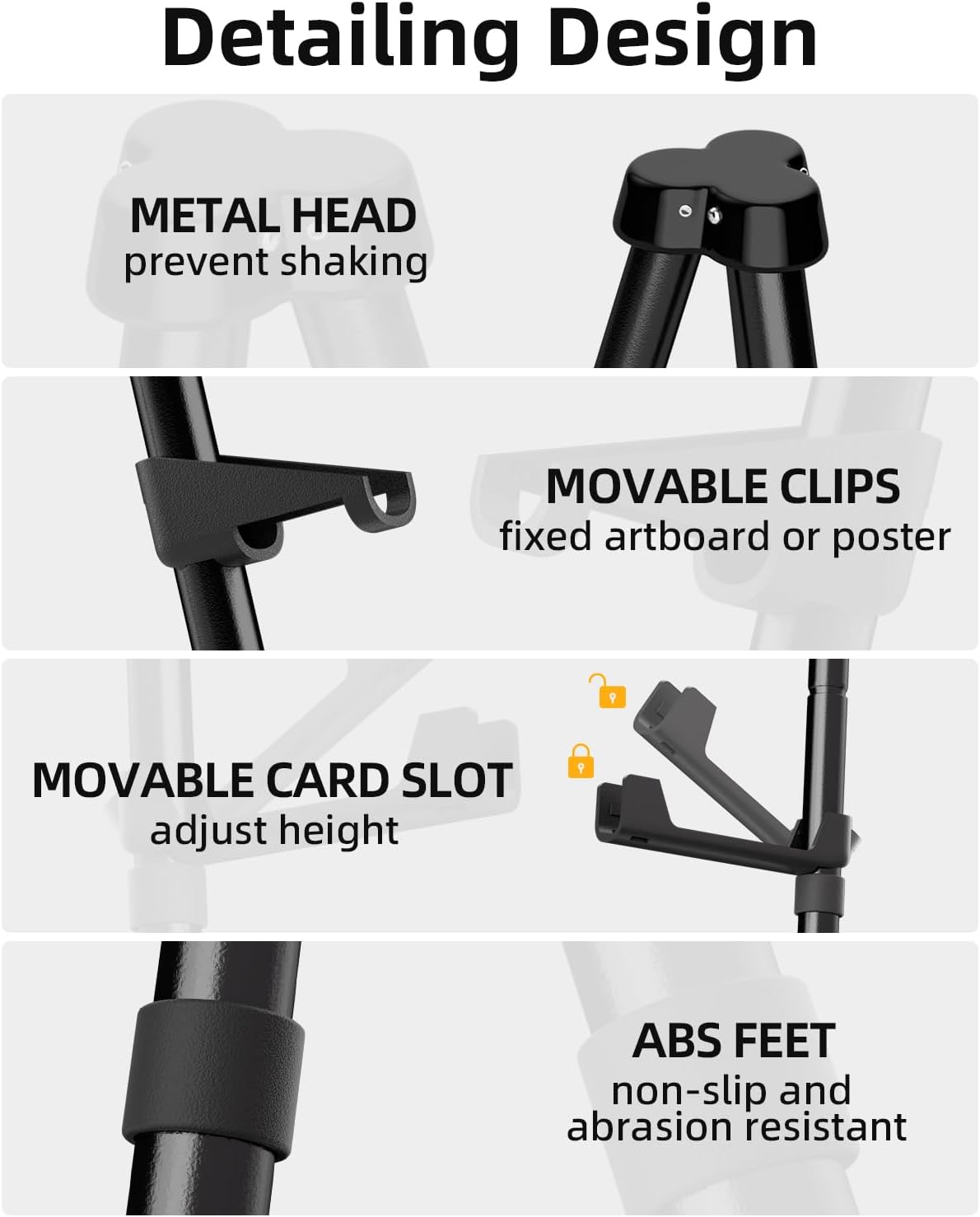 Introducing the Nicpro Art Folding Easels for Display, a set of 6 versatile metal floor easels that are perfect for showcasing artwork, signs, posters, and more. Each easel stands at an impressive 63 inches tall and features a sleek black finish, adding a touch of elegance to any display.